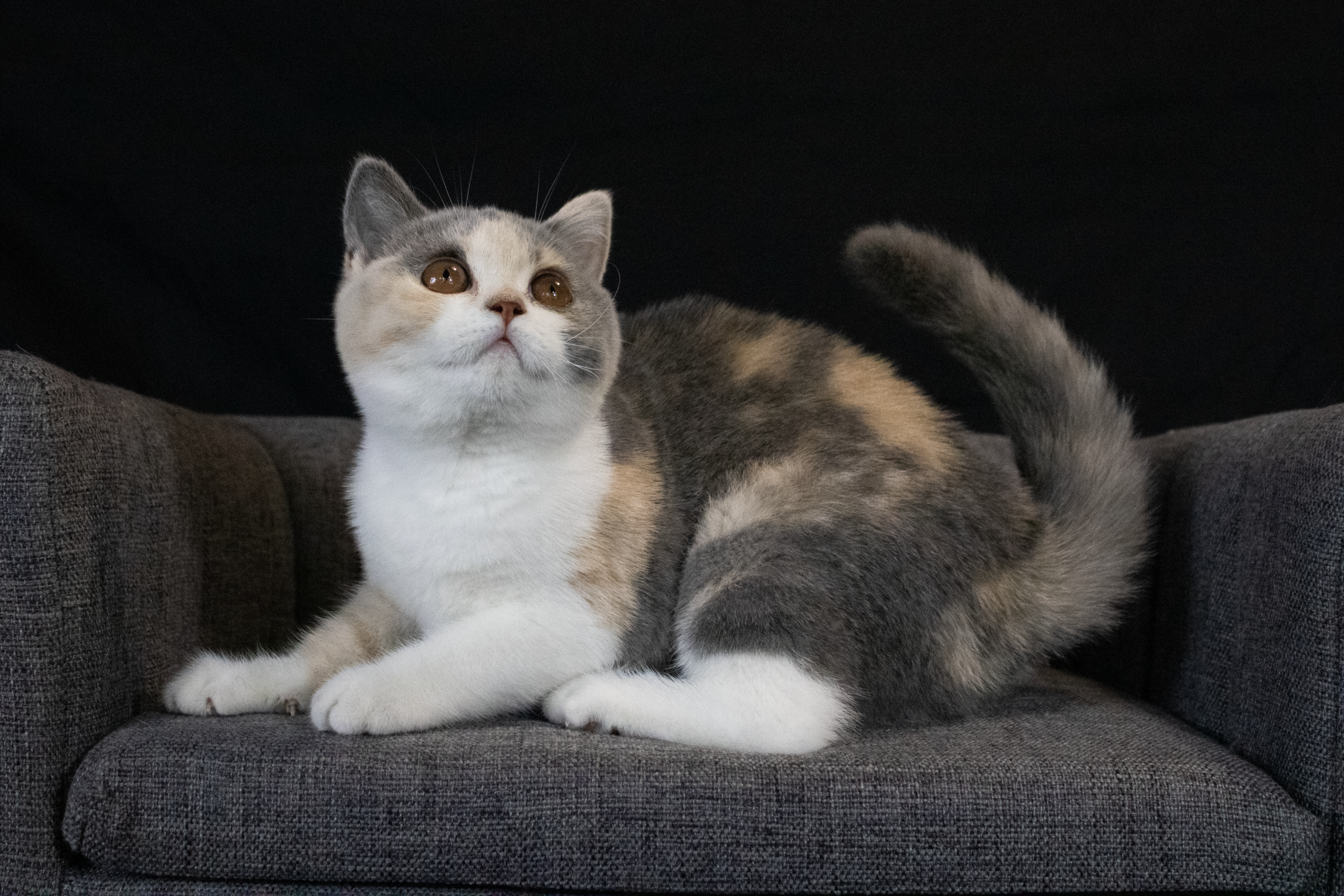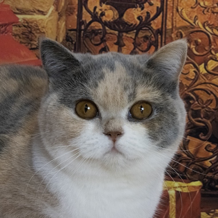 Alice est une femelle British Shorthair de couleur Bleu Tortie et porteuse de Cinnamon.